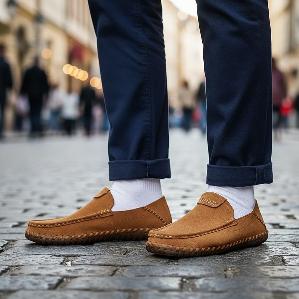 Designed with soft suede and detailed hand stitching, these loafers offer a comfortable, broken-in feel from the first step. The lightweight design and cushioned insole keep every stride effortless.